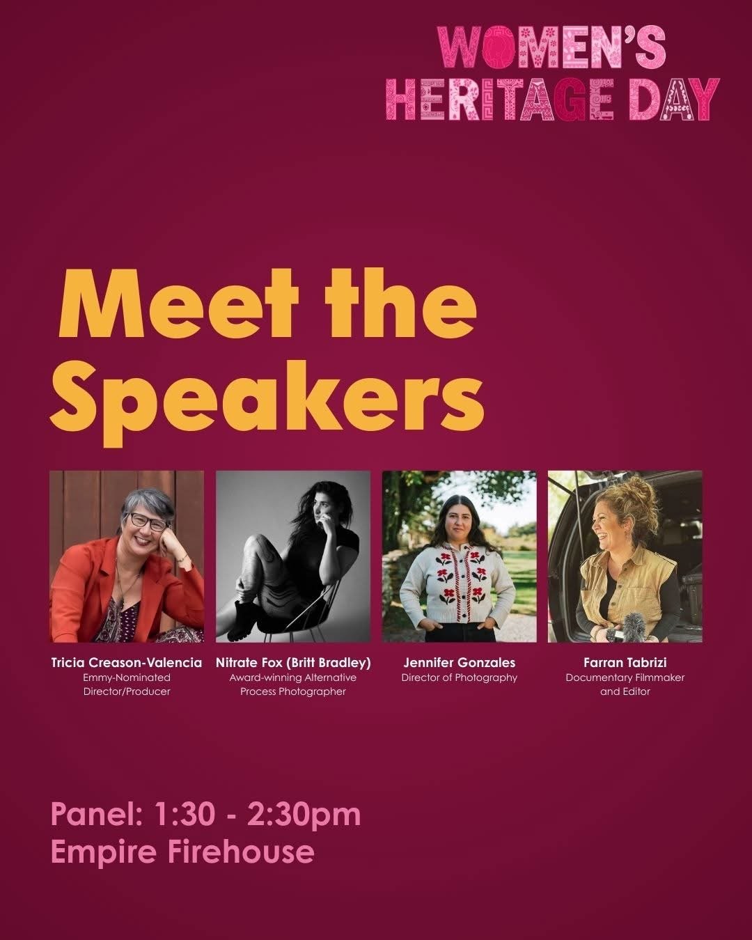 🕰️ Panel is from 1:30pm - 2:30, Women's Heritage Day is from 12pm to 4pm. 🎟️ Free!
